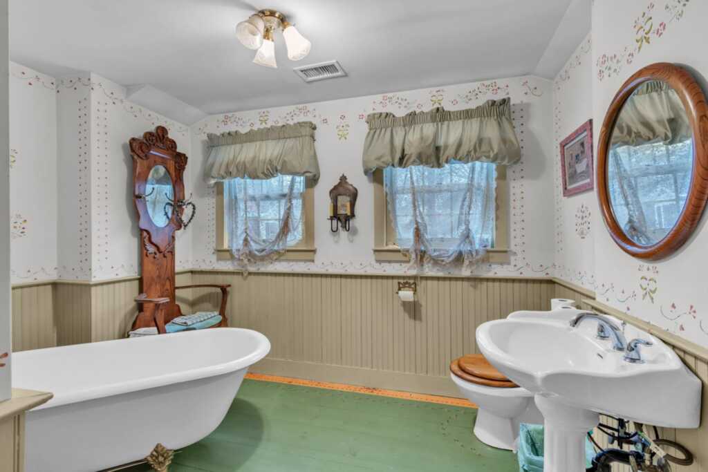 This stunning 1.09-acre property offers seclusion and tranquility, making it an ideal retreat for your extended family. The exquisite five-bedroom colonial, constructed circa 1875, beautifully blends historical charm with modern luxury. Its unique architectural style features elegant wide-plank flooring, charming bay windows, and three inviting fireplaces. The spacious kitchen is equipped with a double sink and a large island for extra seating, perfect for family gatherings. With two staircases, a luxurious pedestal tub, recessed lighting, and ornate moldings, each room has its own distinct character. The home was thoughtfully expanded in 1989 to include an addition and a two-car garage, ensuring ample space for everyone. The large driveway provides convenience and welcomes guests. It's the perfect place for memories to be made! All Furniture (Antique) will be sold separately for $49,000